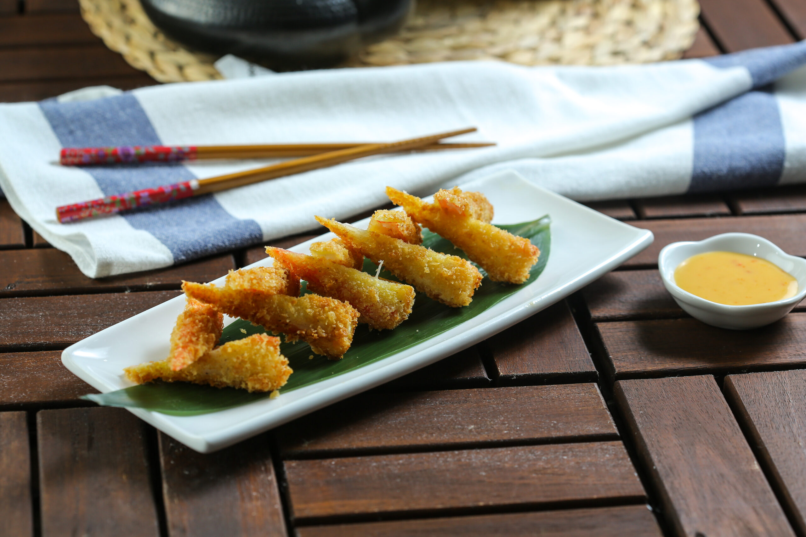 5 Pcs Of Fried Breaded Crabsticks Served With Spicy Honey Sauce.