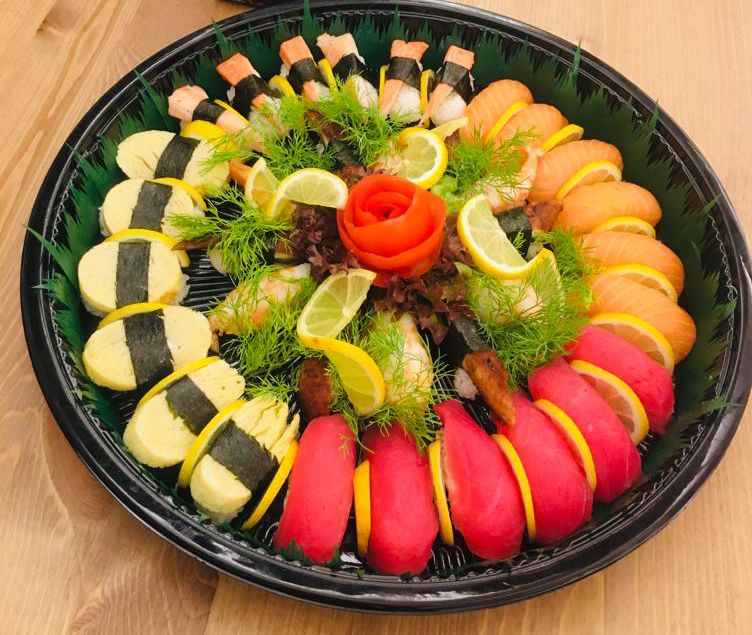 4 Pcs California Roll, 4 Pcs Tuna Maki, 2 Pcs Tuna, Salmon, Shripm, 1 Pc Crab, 1 Pc Tamago Sushi.