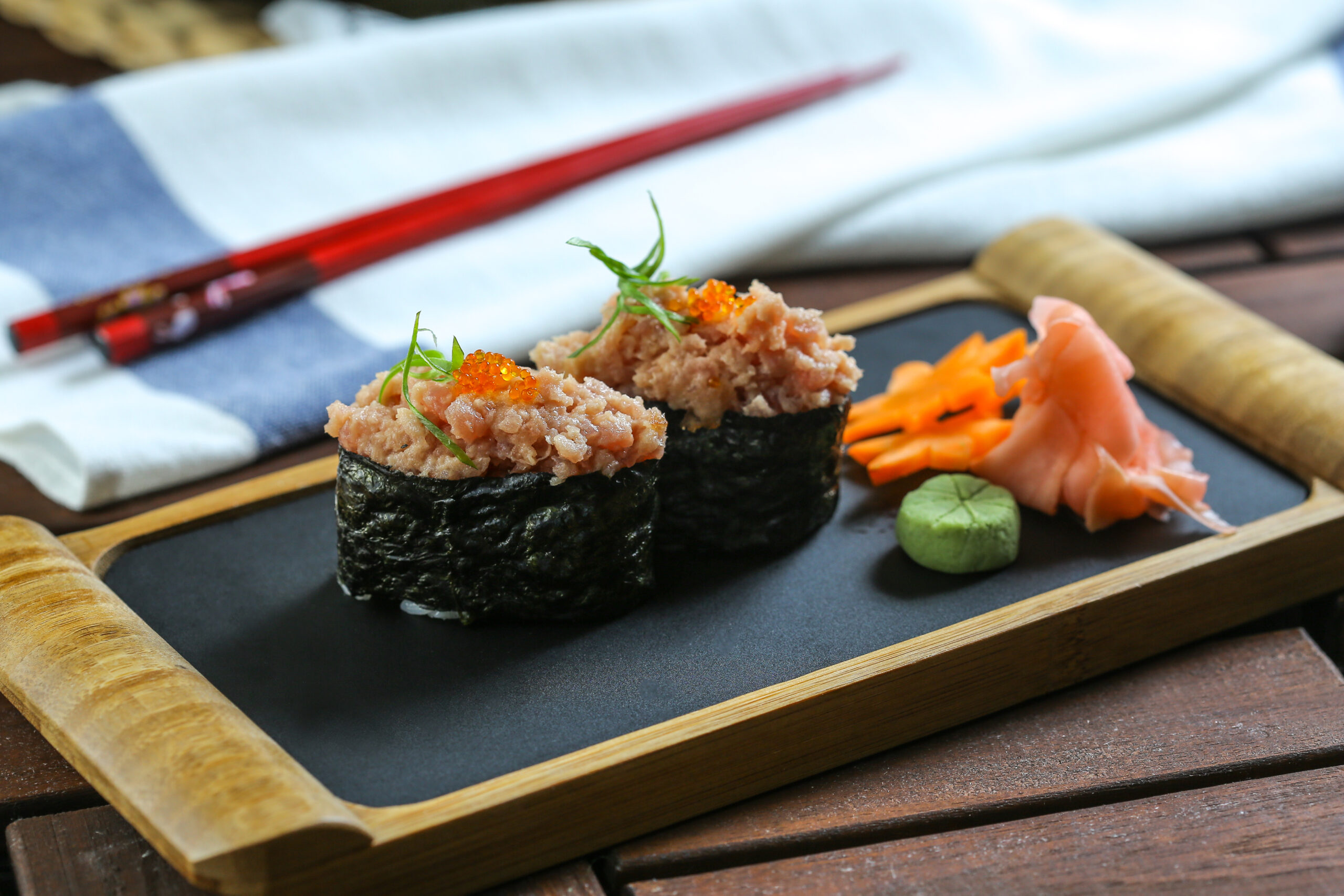 Nori, Sushi Rice, Mixed Tuna , Chilli Oil And Avocados. 2Pcs