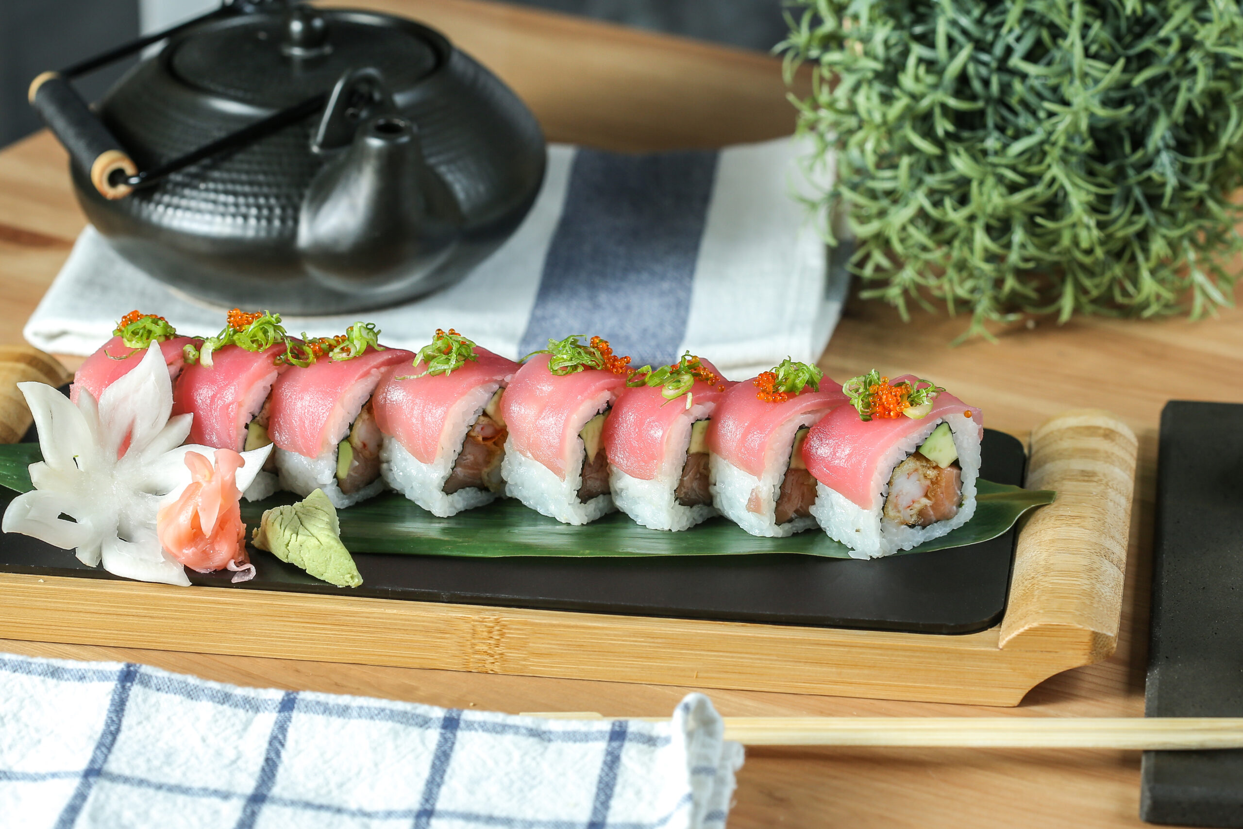 Shrimp Tempura, Salmon,Tuna, Shrimp, Avocados, Spring Onions, Cream Cheese, Tobiko.