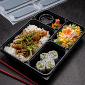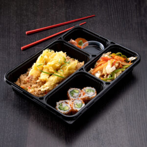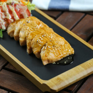 Salmon bento Salmon teriyaki, Tempura roll 4pcs, Plain rice, Veg. teppan, drinks. KD 4.400Add to cart